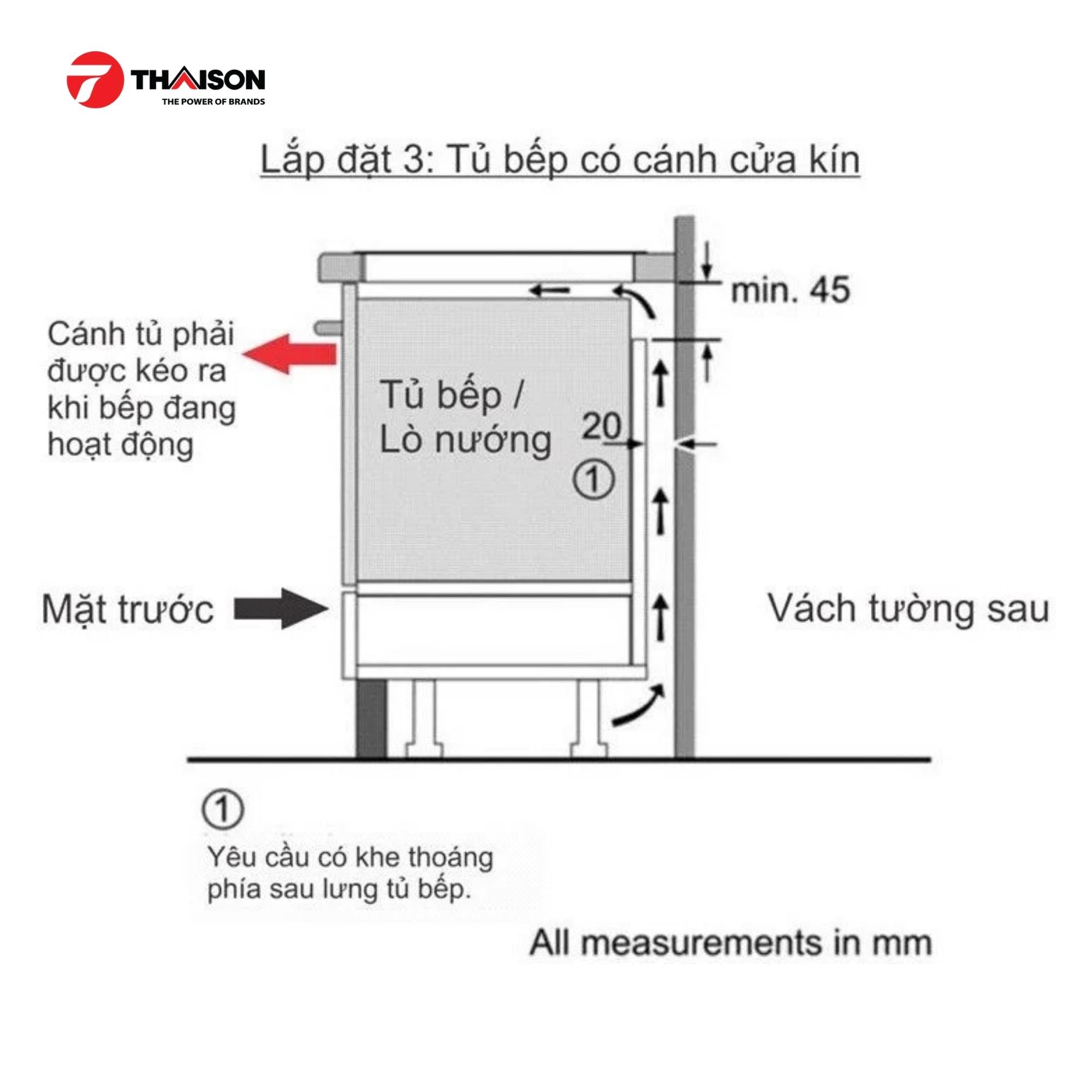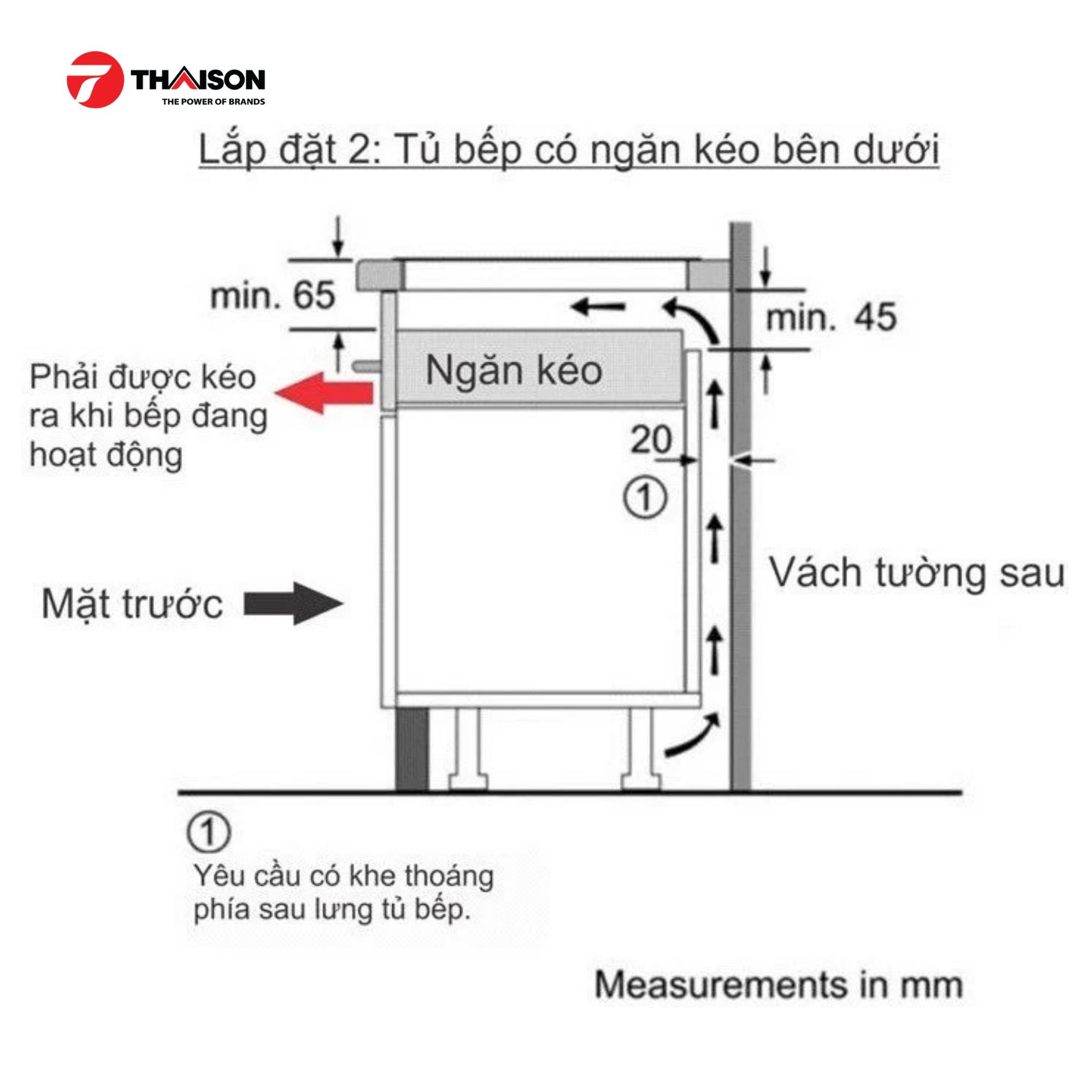 Kích thước vùng nấu, lắp đặt