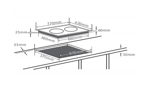 Bếp từ CHEFS EH-DIH666 sử dụng 2 mâm từ E.G.O nhập khẩu Đức với đường kính mỗi mâm là 200mm. Tổng kích thước sản phẩm là R730xS430xC60 (mm) và kích thước lắp đặt là R670xS370 (mm) với tổng trọng lượng là 8kg.