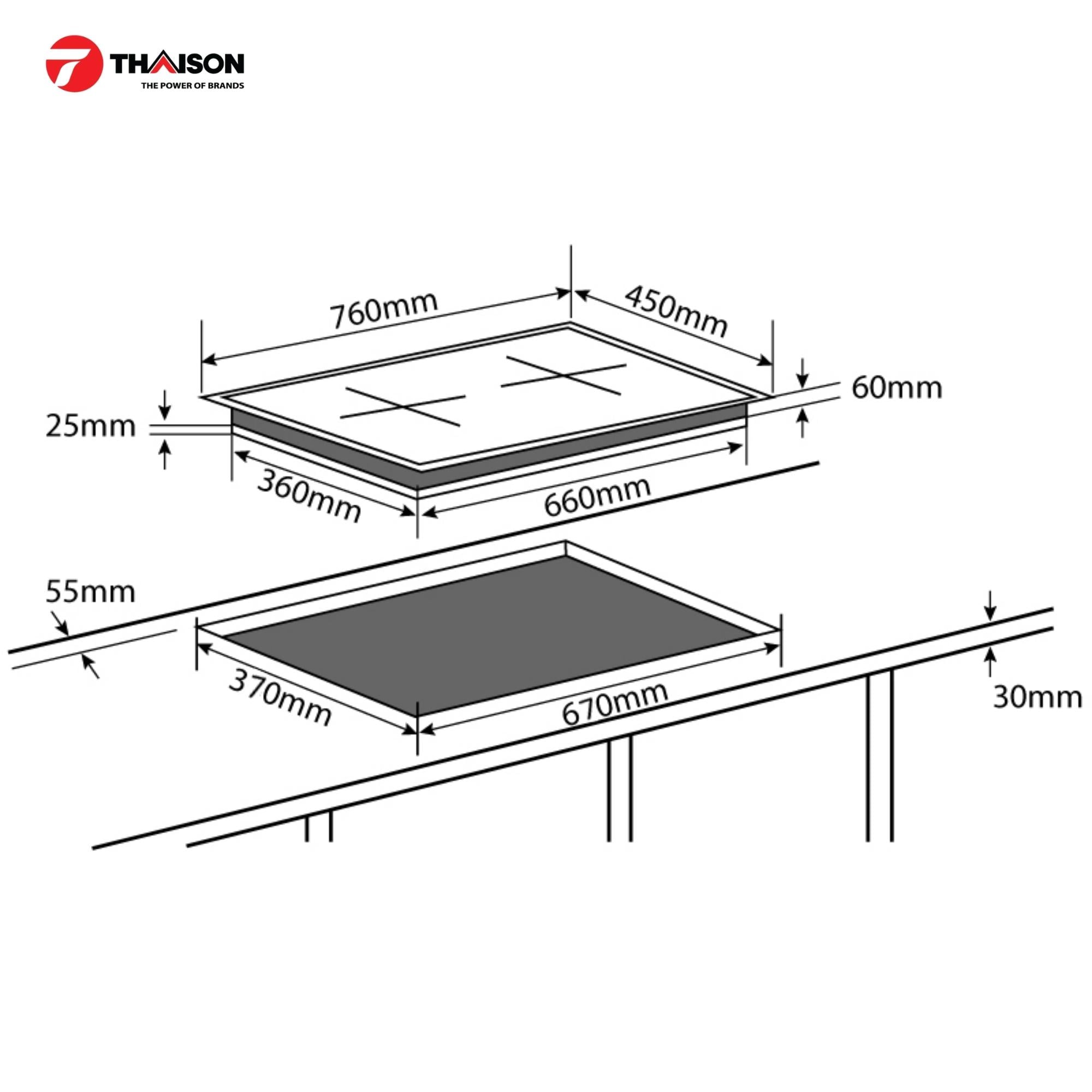 | Kích thước lắp đặt (mm) | W670 x D370 |