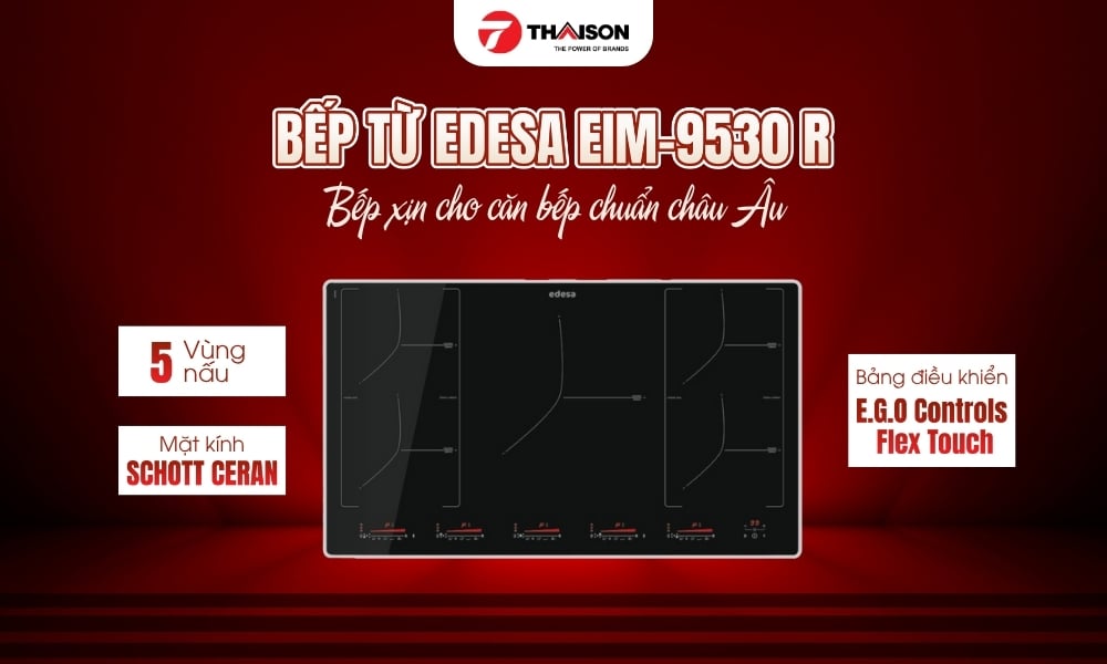 Bếp từ Edesa EIM-9530 R 5 vùng nấu được nhập khẩu chính hãng từ Tây Ban Nha, mang thiết kế sang trọng với các tính năng hiện đại. Bếp tích hợp công nghệ Inverter, chức năng Booster nhanh chóng và tính năng Horizone kết nối vùng nấu lớn. Các tính năng an toàn như tự động nhận diện dụng cụ nấu, phát hiện tràn nước và bảo vệ quá nhiệt giúp đảm bảo an toàn tuyệt đối. Hãy cùng Bếp Thái Sơn khám phá model hiện đại này trong bài viết dưới đây nhé!