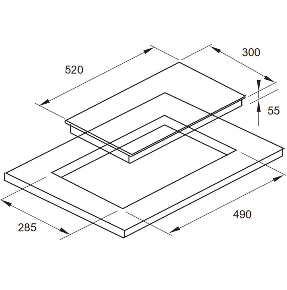 Bếp từ FAGOR 3MI-2AS được thiết kế lắp âm với kích thước mặt bếp là R300 x S520 x C50(mm) và kích thước lắp đặt là R285 x S490(mm). Bếp sử dụng 2 mâm từ với đường kính mỗi mâm là: