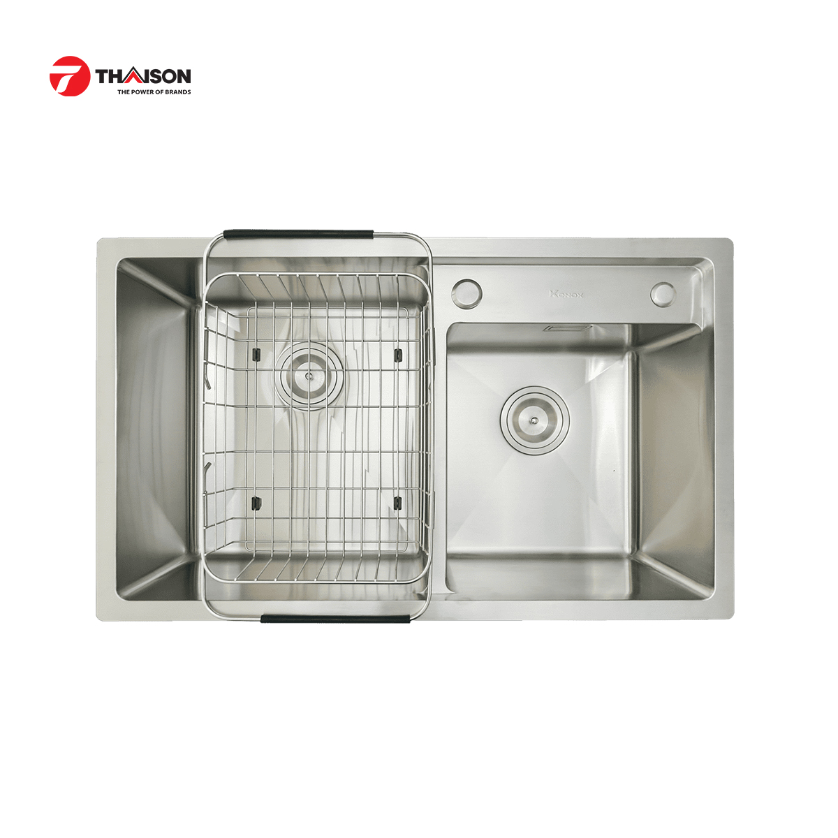 - Chậu rửa bát Konox Overmount Sink KN7847DO được trang bị tấm chống ồn mặt sau, giúp triệt tiêu tiếng ồn khi xả nước, va chạm.