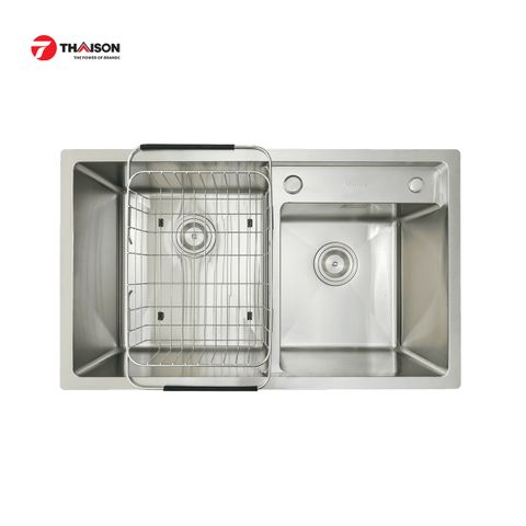 Chậu có 2 hố rửa lệch với hố lớn có kích thước 380 x 420 mm, hố rửa nhỏ là 325 x 345 mm. Kích thước cắt đá lắp dương là 750 x 440 mm. Ngoài ra, chậu được làm từ chất liệu inox 304AISI tiêu chuẩn Hoa Kỳ, sáng bóng, bền bỉ và chống oxi hóa giúp bạn dễ dàng vệ sinh, chống ăn mòn và bám bẩn.