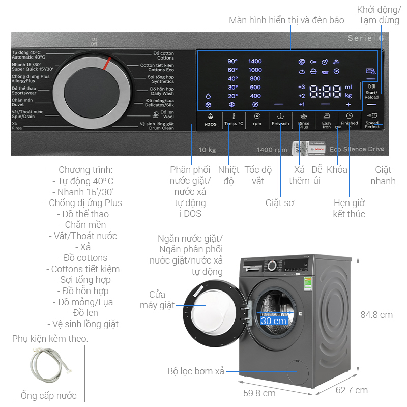 | Độ ồn khi giặt/vắt | 44 - 69 dB |