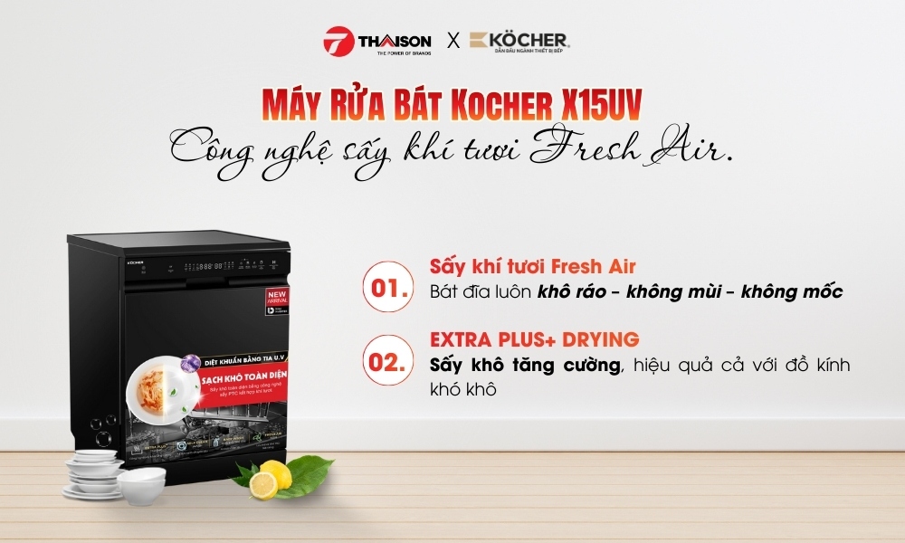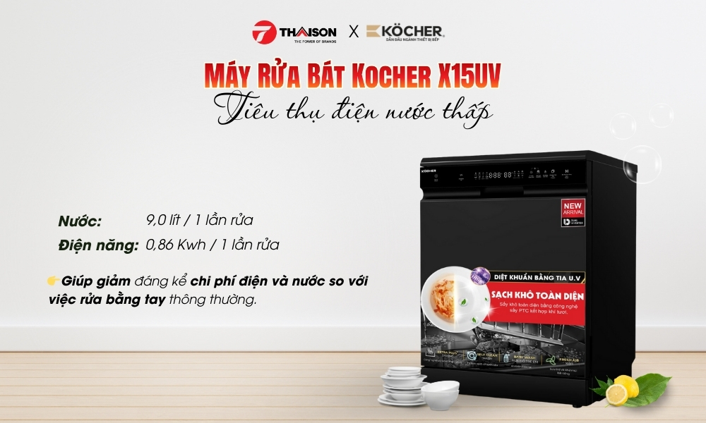 Mua máy rửa bát Kocher X15UV 17 bộ tại Bếp Thái Sơn để yên tâm về sản phẩm chính hãng, giá rõ ràng và hỗ trợ tận tình. Liên hệ ngay Bếp Thái Sơn để được tư vấn chi tiết, báo giá nhanh và hỗ trợ lắp đặt, giúp việc rửa bát trở nên nhẹ nhàng, sạch sẽ và tiện lợi hơn mỗi ngày.