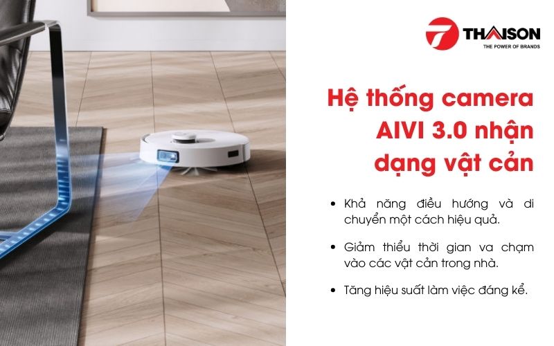 Bằng hệ thống camera này, robot có khả năng điều hướng và di chuyển một cách hiệu quả hơn, giảm thiểu thời gian va chạm vào các vật cản trong nhà và tăng hiệu suất làm việc đáng kể. Nhờ vào công nghệ tiên tiến này, các vật cản như tất, dép, vải mềm, bàn cafe, thảm, thùng rác, sofa, cửa và thậm chí cả vật nuôi đều được robot nhận dạng và tránh né một cách dễ dàng.