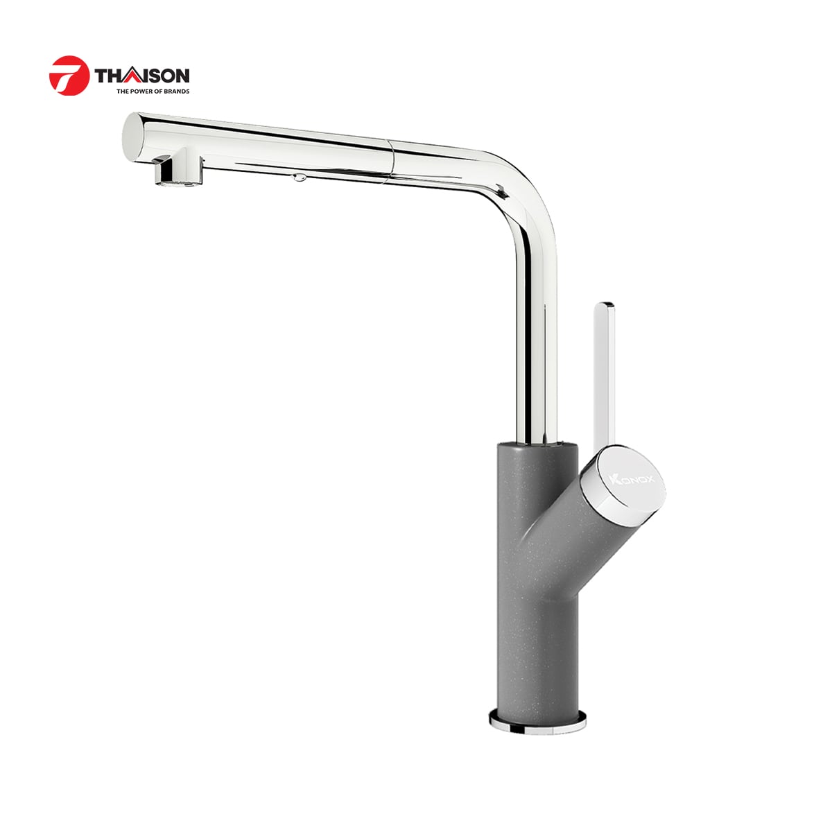 Nguồn gốc và thương hiệu Vòi rửa bát rút dây Konox Artan Grey